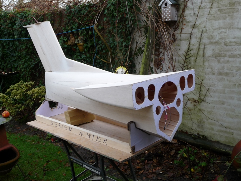 De achterromp met een gedeelte van het "midden platform"waar landingsgestel in, vleugels aan en motoren op gemonteerd worden.