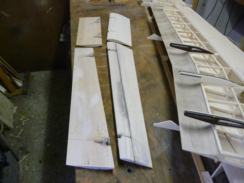 Alle flaps zowel binnen als buiten gefreesd uit massief balsa, de lange buiten flaps hebben een koolstof versterking tegen krom trekken.