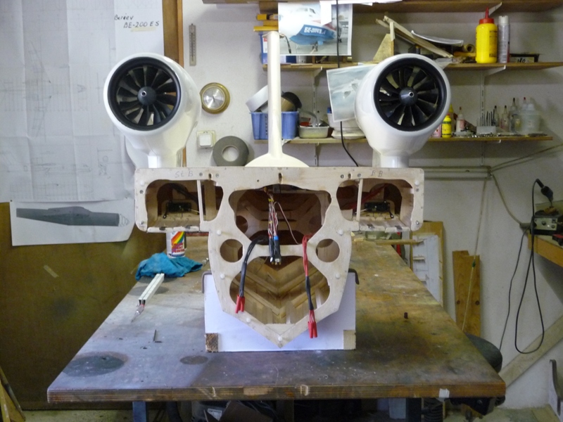 De gondels met ingebouwde motoren nu vast maar demontabel op de achterromp.