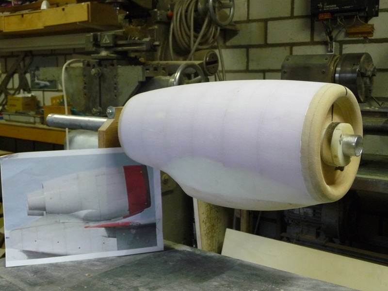 Vervolgens met massief balsahout en plamuur de werkelijke vorm na gemodelleerd zo veel mogelijk op schaal.