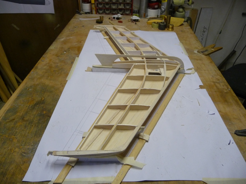 Het stabilo is nu omgekeerd op speciale profiel steunen om vormafwijkingen uit te sluiten en de bovenzijde kan nu beplankt worden.