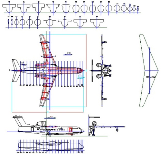 Als eerste de hoofdontwerp tekening met alle hoofdafmetingen en doorsnedes van de romp.
