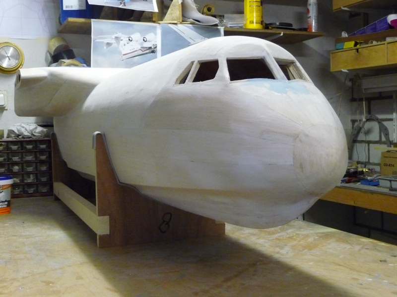 De "boegvorm" en cockpit ramen van de voorromp zijn hier duidelijk te zien.