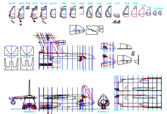 De ontwerp tekening van het voorste rompdeel met landingsgestel en neus(wielen) (An-03.dwg).