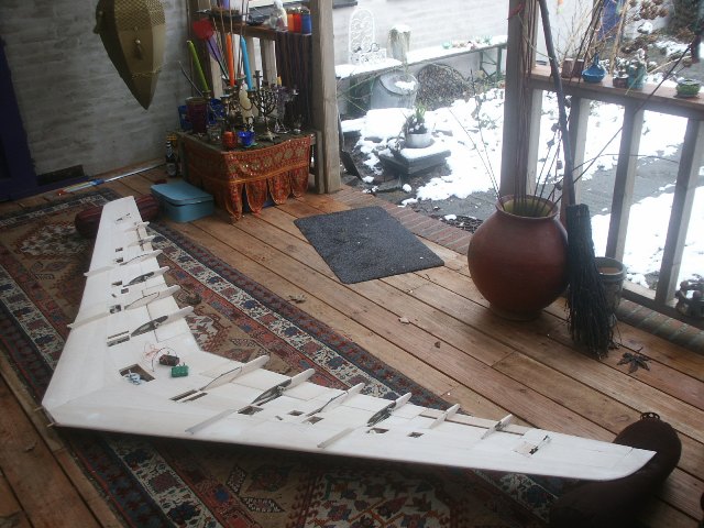 De komplete vleugel met ingeschoven flaps, let op, achter rand flaps nu gelijk ook met het rolroer.