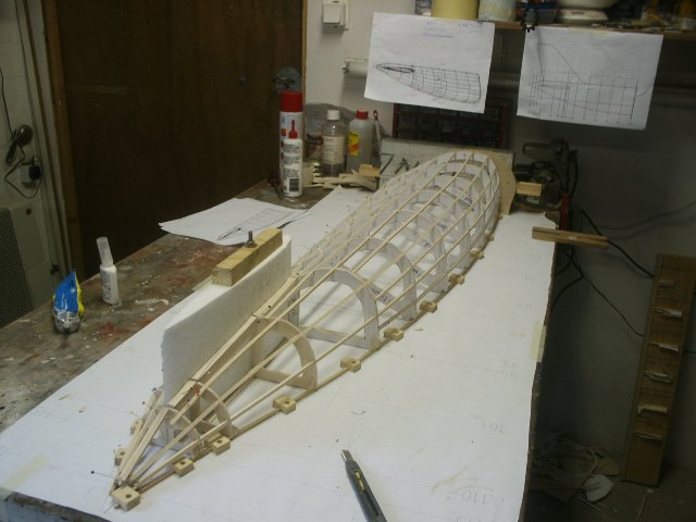 Het halve (achter) rompdeel is op de vlakke tafel gefixeerd met kikkerblokjes.