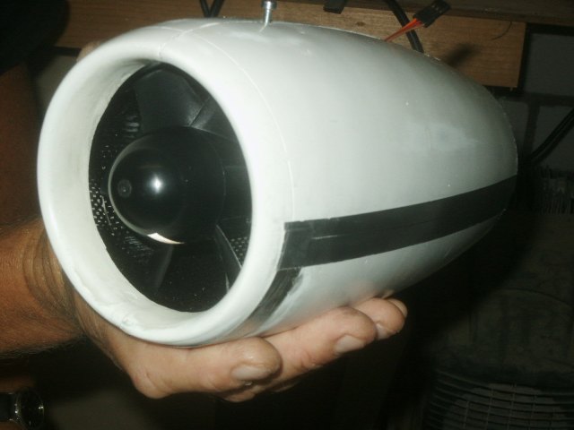 De kompleet gemonteerde motor gondel (4x) van voor gezien.