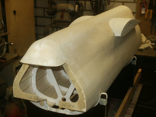 Bijde voor rompdelen aan elkaar gelijmd en de overige beplanking aangebracht.