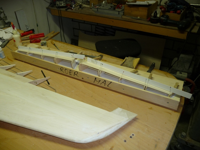 De rolroer fabricagemal waarmee ook de z.g. tipverdraaiing van 1,5° er vast ingebouwd kan worden.