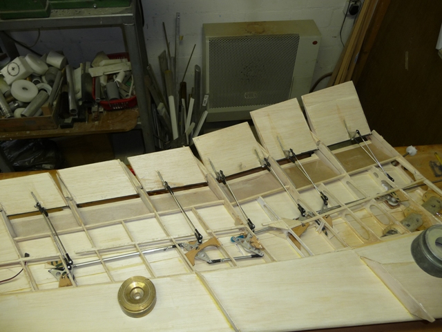 Alle 6 flaps worden aangestuurd door een stangenstelsel vanuit de romp.
