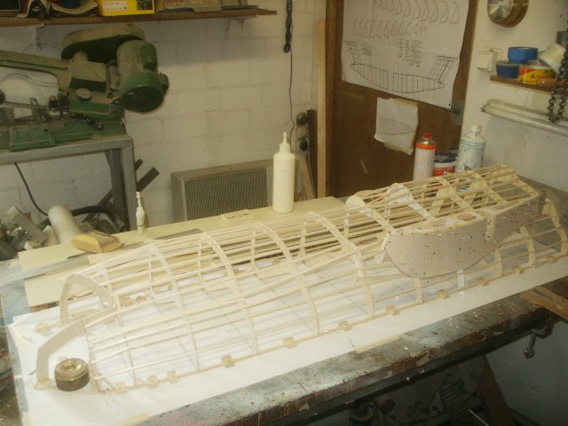 Een half voorromp deel in aanbouw, let op de geintegrreerde vleugel "schouder".