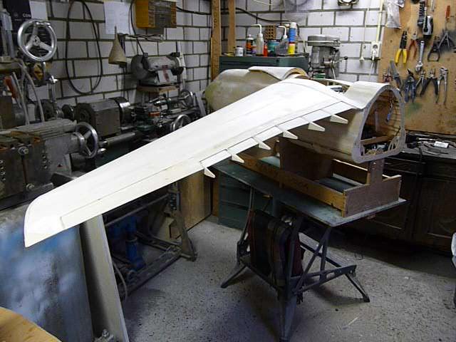 De komplete bakboord vleugel wordt nu aan de romp pas gemaakt en aangesloten.