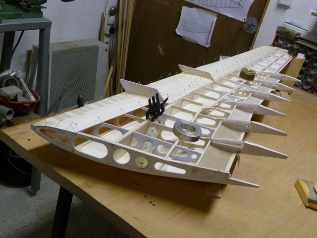 De bakboord vleugel op z'n kop en bijna klaar, nog zonder flaps en rolroer.