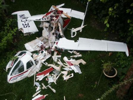 model vliegtuig valt met zeer hoge snelheid in de mais wat de klap nog